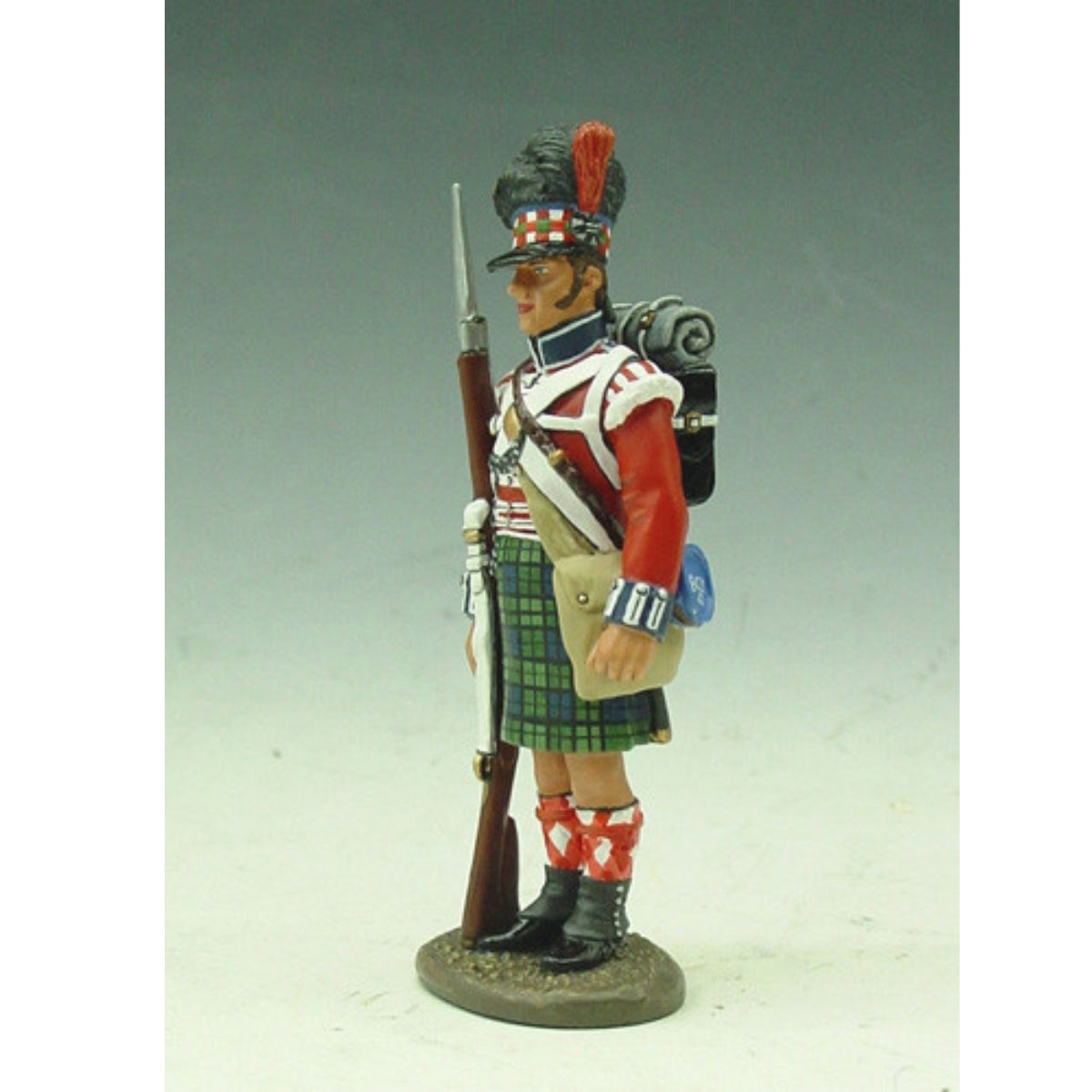 A standing Highlander, rifle at his side with fixed bayonet