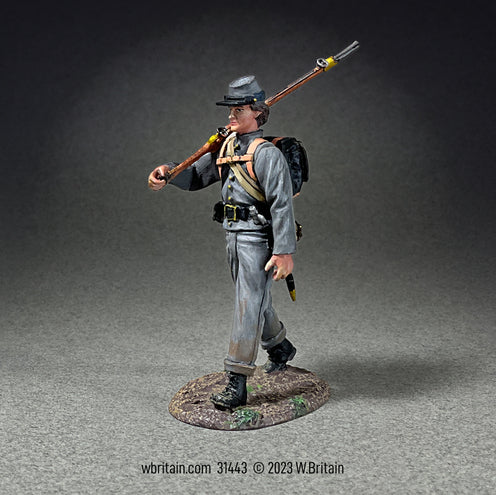 31443 - Confederate Infantry Marching with Knapsack Wearing Depot Jacket