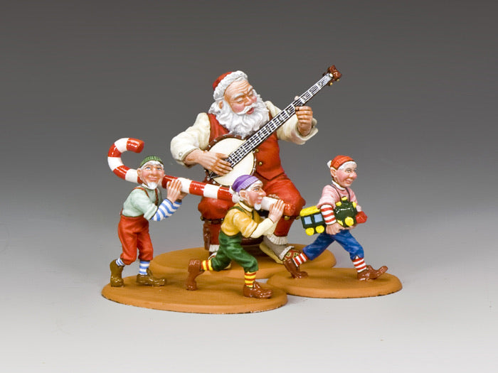 As everyone knows Santa does not make all those gifts and toys for good little girls and boys all by himself ... He’s gotta have some expert help! And here are the first 3 of K&C’s all-new ‘Elves’, Santa’s little helpers, together with a banjo-playing Santa.
