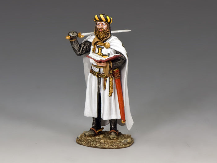 This standing Crusader Warrior Knight was inspired by an illustration by the late, great Angus McBride (1931-2007), one of the finest historical illustrators in the UK. In a long and distinguished career his work featured in many fine Childrens’ magazines in Britain such as “Look and Learn” and “Finding Out”. To most toy soldier collectors he is best known as the illustrator behind dozens of Osprey’s “Men-at-Arms” series of uniform books. Our K&C interpretation portrays a veteran knight of The Order of Brothers of the German House of Saint Mary in Jerusalem. Quite a mouthful ... They were more commonly called ... “The Teutonic Knights”.