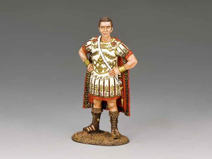 Marcus Antonius, more commonly known in English as Mark or Marc Antony. A powerful Roman politician and general and a staunch ally of Julius Caesar. Following Caesar's death he was involved in a power struggle with Caesar's successor Octavian (later to be called Augustus). Although married to Octavian's sister he carried on an affair with the Egyptian queen Cleopatra who bore him 3 children. Eventually Mark Antony and Octavian's mutual hostility erupted into Civil War and Antony fled to Egypt after his army was defeated at the Battle of Actium. Shortly thereafter the lovers committed suicide. Our figure of Mark Antony in Roman general's uniform and armour is based on the designs used in the 1963 epic "Cleopatra" starring Elizabeth Taylor with Richard Burton as Mark Antony.