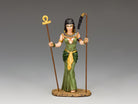 Cleopatra, the Queen of the Nile and the lover of Mark Antony. She was also the last pharaoh of the Ptolemaic line of Egyptian rulers. These were all descended from Ptolemy, one of Alexander the Great's generals. Her first Roman paramour was Julius Caesar himself and by him she had a son Caesarion. After Caesar's assassination she aligned herself with Mark Antony. Following Antony's suicide she also killed herself. The K&C figure draws on several influences for its design most notably, the 1963 "Cleopatra" movie.