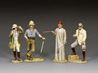 This unique little set of 4 figures depicts four of the people very much associated with the discovery of the boy pharaoh’s tomb... Howard Carter (1874-1939) became world-famous after discovering the virtually intact tomb of 18th Dynasty Pharaoh Tutankhamun. Carter had been exploring several areas in Egypt seeking the tombs and other burial sites of Ancient Egypt’s nobles and high court officials before beginning work at the behest of his patron Lord Carnarvon in the Valley of the Kings in 1914 to search for the tomb of Tutankhamun. The outbreak of World War One in that same year brought work to a temporary halt while Carter undertook other duties on behalf of the British Government. In late 1917 he was allowed to return to his excavations. It was however to take 5 long years until his efforts began to yield results. Throughout this time his work was sponsored by his patron, Lord Carnarvon (1866-1923). George Edward Stanhope Molyneux Herbert, 5th Earl of Carnarvon was an English Lord and wealthy aristocrat with a passion for all things ‘Ancient Egyptian’. After his doctors advised that he ‘winter’ outside England he sailed for Egypt to enjoy the warm weather and become an enthusiastic amateur Egyptologist collecting all kinds of Egyptian antiques and relics. It was in Cairo that he first met Howard Carter who convinced the wealthy peer to fund his search for the elusive tomb. After many years and much expense the noble Lord was just about ready to withdraw his financial support when Carter telegraphed the exciting news of his biggest discovery yet... Lord Carnarvon meanwhile had been visiting Monte Carlo and rushed by boat to Alexandria and then by train to Cairo to see for himself exactly what Carter had uncovered. Travelling with him was his daughter, Lady Evelyn Herbert (1901-1980). Rushing with her father to the site of the newly-discovered tomb Lady Evelyn was only the third person in modern times to enter the burial chamber of Tutankhamun after Carter and Carnarvon. 50 years after the great event Lady Evelyn attended the opening of the ‘Treasures of Tutankhamun’ exhibition at the British Museum in London where she was presented to the Queen. Accompanying the three British figures is the single Egyptian figure of famed Egyptologist, Dr. Selim Hassan (1886-1961) dressed in traditional Egyptian garb. He also took part in several other major excavation works at other ancient Egyptian burial sites and eventually became the senior Professor of Egyptology at Cairo University. This particular set will be joined with other figures closely associated with the search for the tomb in the coming months.