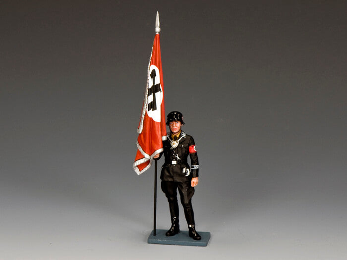 In 1936 the SS purchased a small porcelain factory to, in the words of Reichsfuhrer SS Himmler, “enhance the culture of the SS state!” It was called “Allach Porcelain”. Between 1936 and 1945 the factory produced numerous decorative items including animals, home décor of all descriptions and, of course, figurines. Military figures were among the most sought after and one of the best was the Allach figure of the “SS Fahnentrager” (SS Flag Bearer) introduced in 1936. This special piece was not available to the general public but only available as a special ‘Presentation Gift’ by the Reichsfuhrer himself. Our new model is a scale copy of this very special figure.