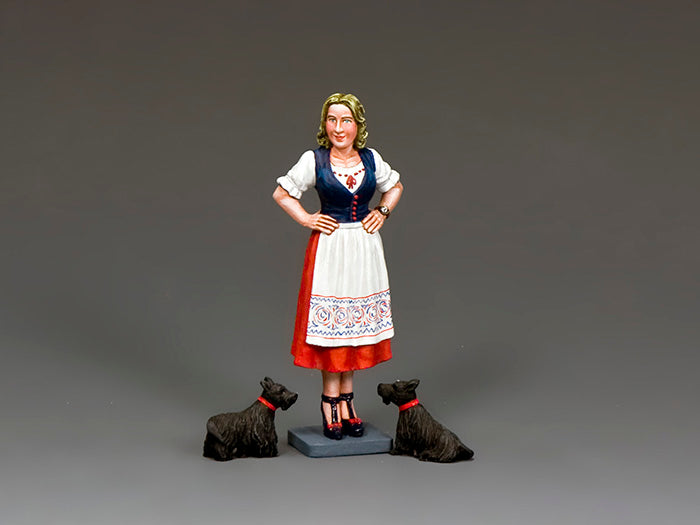 Eva Anna Paula Braun (1912-1945) was Adolf Hitler’s mistress from 1932 until one day before he and she committed suicide in the Fuhrerbunker in May 1945. For several years Eva also enjoyed the company of her two small Scottish Terriers, ‘Negus’ & ‘Stasi’ and would take them everywhere with her. When she stayed at Hitler’s mountain retreat, the Obersalzberg Eva would often be seen in the ‘Dirndl’, the traditional female dress worn in Austria, South Tyrol and Bavaria. That is how K&C have depicted her... together with her two little ‘Scotty dogs’.
