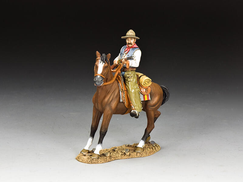 Marlin Firearms was founded back in the 1870s and produced a large assortment of firearms including lever-action rifles, pump-action shotguns and single-shot rifles. For many years it was considered to be the main competitor of the more famous Winchester. At this time, Marlin produced a series of full-colour advertisements portraying a mounted cowboy with his own lever-action rifle in a ‘heroic’ pose. We thought this would make a great figure to add to our range… and here he is!
