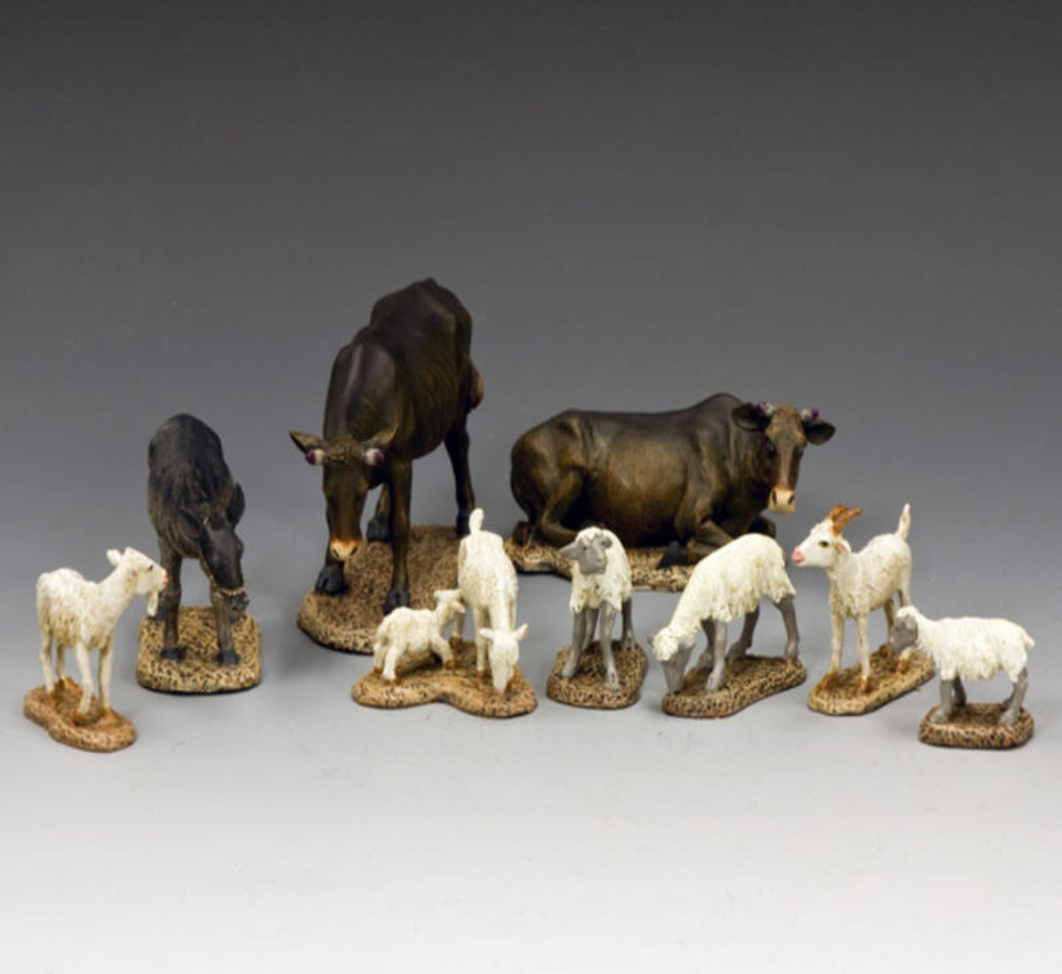Always useful in any toy soldier scene or diorama...a pair of cows, a donkey and an assortment of sheep and goats. You build the scene we will provide the livestock!!!