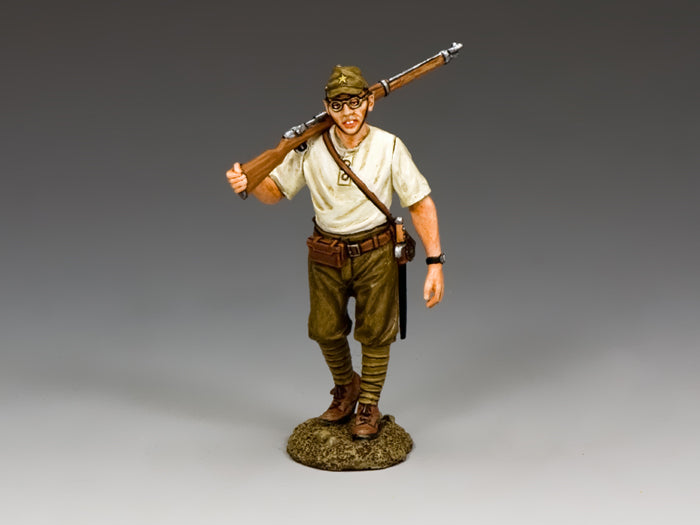 The first of an upcoming series of regular Japanese Army infantry...marching with his Arisaka rifle on the shoulder. Based on an actual photograph this soldier is extremely casual in his dress...even by Japanese standards!