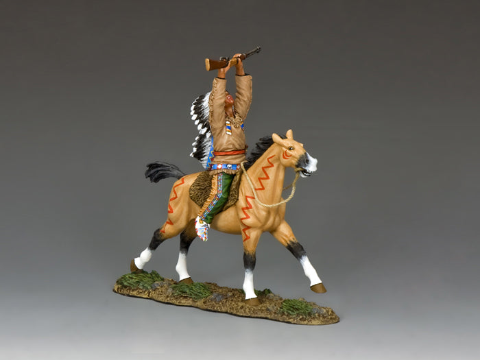 One of the Sioux’s most noted war-chiefs “Rain-In-The-Face” was a Lakota and famous among the tribe for his fighting ability and leadership. Here he is riding into battle, with his full eagle-feather war bonnet, rifle held over his head...Totally unafraid of the “Long Knives” or their bullets!