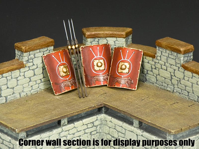 Three separate Legionary shields, decorated with the symbols of K&C’s chosen Legion, the XX Valeria Victrix (the Twentieth Victorious Valeria Legion) together with three ‘Pilums’, the classic Roman Army Throwing Spear. Very useful ‘extras’ for Roman Forts, encampments and... battlefields!