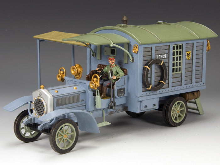 Kaiser WilhelmⅡ, Germany’s Imperial Warlord, was obsessed by war and conquest , he always liked to be as close to the action as his generals would allow. In order to do so, comfortably, he had several special staff vehicles built to carry him closer to the battle. This particular Mercedes contained his camp bed, toilet facilities, a wash basin and his personal maps. Attached to it was a canopy and stairs to allow easy access. It even had a small heater/ stove to provide his favorite coffee! Notice: Our K&C model includes the driver