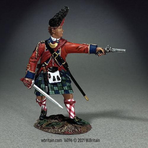 16096 - 42nd Foot Royal Highland Regiment Grenadier Officer Firing Pistol, 1758-63