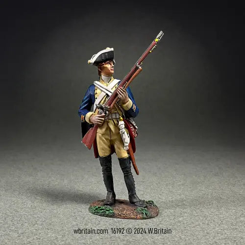 During the American War for Independence most of the German troops were required to be clean shaven. Musketeers wore their hair quite long with a tightly wrapped queue or zopf that extended to the middle of the back. Side locks were worn, two to each side in the form of two horizontal curls at each side of the face. Lt. Johann Carl Philipp von Krafft, a soldier of Capt. Eigenbrod’s Grenadier company, stated in his diary that, “From this time, since Philadelphia we had to wear hair-locks again”. This would seem to indicate that the men had false queues if not real ones. On parade the hair was normally powdered in keeping with period custom, something that would persist throughout the century.