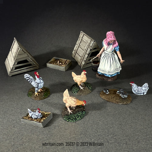 35037 - "Here, Chick, Chick, Chick" Amy Feeding Chickens, with Chicken Shelters, 1855-68