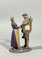 The Great War marked the first time in history the United States sent soldiers abroad to defend foreign soil. The French ecstatically welcomed the first wave of soldiers. “Vive l’Amèrique!” came the shouts at the edge of a Boulogne pier as Pershing steamed into port. In an emotional arrival ceremony at the Marquis de Lafayette’s tomb, Col. Charles E. Stanton declared to the crowd, “Lafayette, we are here!” suggesting Americans had come to repay an old debt to the French dating back to when the colonies stood virtually alone in the American Revolution. The war weary French civilians were curious to meet Uncle Sam’s soldiers greeting them as they marched through the villages toward the front. This set is based on a famous U.S. Army Signal Corps photograph of an old French couple welcoming a couple of Doughboys in their village in 1918.