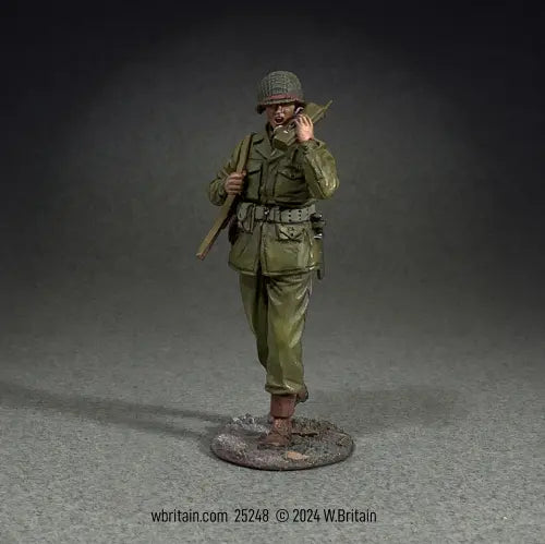 Considered the first modern hand-held, self-contained, radio transceiver the SCR-536 was developed in 1940 and by July 1941 was in mass production. Colloquially referred to as a “walkie talkie,” the Galvin Manufacturing Corporation (turned Motorola in 1947) originally designated it as a “handie talkie” – the terms are often confused as the original walkie-talkie referred to the back mounted model SCR-300 voice radio receiver/ transmitter. Weighing in at 5 lbs. there was no external power switch on the SCR-536. The operator pulled out or pushed in the antenna on the top which operated an internal switch to turn the radio on or off. The range of the unit varied with terrain; from a few hundred feet (about 100 metres), to one mile (1.5 km).