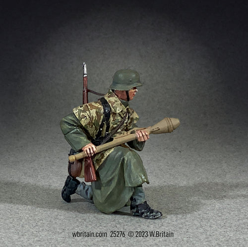 25276 - German Grenadier Kneeling with Panzerfaust in Zeltbahn and Greatcoat, Winter 1944-45