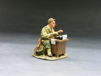 DD077 “War Correspondent” The “companion piece” to DD076 is our seated at his typewriter “Ernie Pyle” War Correspondent. This terrific little figure is full of character another “tribute” to the war correspondent Ernie Pyle who wrote the classic “The Story of G.I. Joe” which was later made into a great WW2 movie starring Robert Mitchum and Burgess Meredith as Pyle himself. Sadly, Ernie was killed later in the war.