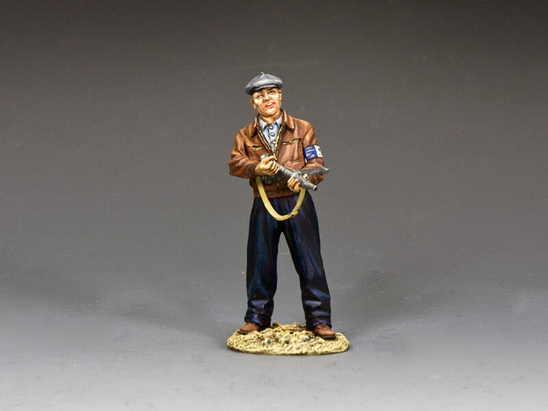 This resistance member is cocking his British-supplied ‘Sten’ sub machine gun Thousands of these simple but sturdy weapons were parachuted into France and saw extensive service with the ‘Maquis’.