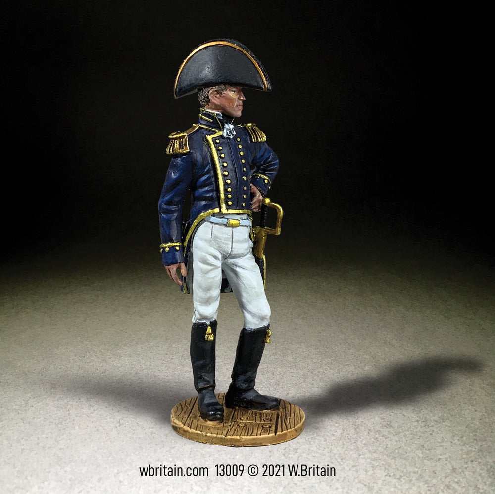 Although the U.S. navy was created by an act of Congress on 30 April, 1798, the first uniform instructions were not published until 1802. Civilian and military fashion were dramatically changing due in part to the French Revolutionary and Napoleonic Wars in Europe. Officer’s uniforms were privately purchased and as a result the interpretation of theregulations allowed some latitude with many new uniforms cut in the latest fashion. A new U.S. navy regulation was approved in 23 November, 1813 which described the dress of senior officers, confirming the evolution of dress since the 1802 regulations. This new style uniform is well recorded by several surviving portraits of U.S. navy officers of the Quasi-War with France and the War of 1812, and remarkably similar to the Naval uniforms of Great Britain.
