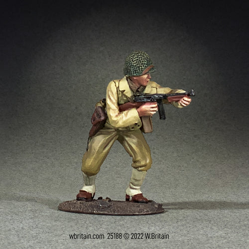 25188 - U.S. Infantry NCO Crouching with Thompson, 1943-45