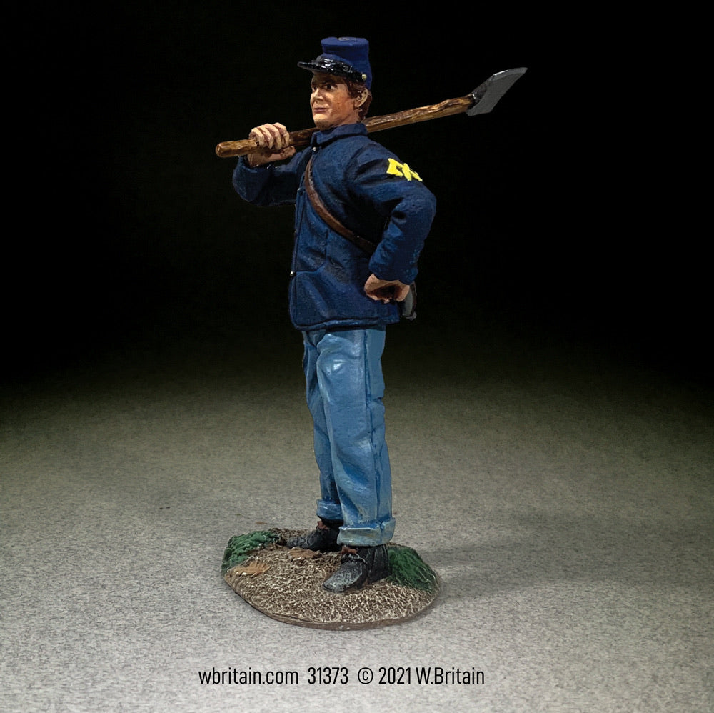 31373 1/30 Scale Matte Finish Single Figure Engineering and pioneer soldiers played an important part in the American military since its beginning. The primary role of pioneer units was to assist other arms in tasks such as the construction of field fortifications, military camps, bridges, and roads. At the Battle of Stones River, Pioneers played a key role in halting the Confederate advance. Fortifying their line with hasty works, ditches, and Chevaux de Frise (a medieval defensive apparatus of a log covered with many projecting wooden spikes), they gave the Union forces time to regroup. Although combat was their secondary purpose, in this battle pioneers saw front line action where they distinguished themselves as first-rate fighting men.