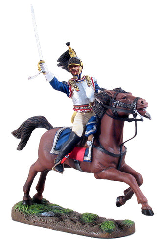 A French cuirassier was the most feared and potent cavalry on any Napoleonic battlefield. Napoleon employed this fine cavalry as his "shake and awe" troops. Imposing on their heavy mounts and encased in a cuirass, front and back, these troops were formidable.