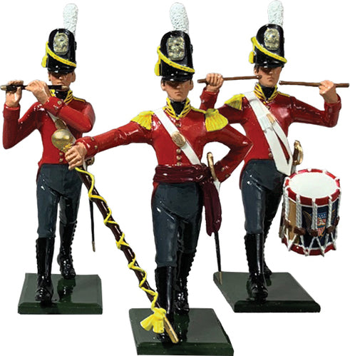 During the War of 1812, the Field Music – a unit of the army made up of fife and drum musicians – served a central role in the day-to-day lives of the soldiers. The fifes and drums dictated every aspect of the daily routine playing all duties, calls, and signals; the music told the soldiers when to eat, drill, when to get up and when to retire. Each soldier was expected to know what each call meant, and to respond to it immediately. Like the infantry, artillery musicians wore reversed colors, but with the collar trimmed in yellow, the branch of service color for the artillery at this time. Rarely did all of the components of any artillery regiment serve together, it may have been rare for more than a few musicians to play together. The exception seems to be the 2nd Artillery when they were pressed into service as infantry during the Niagara campaign, which allowed most of the regiment’s musicians to be at the same location and work together.