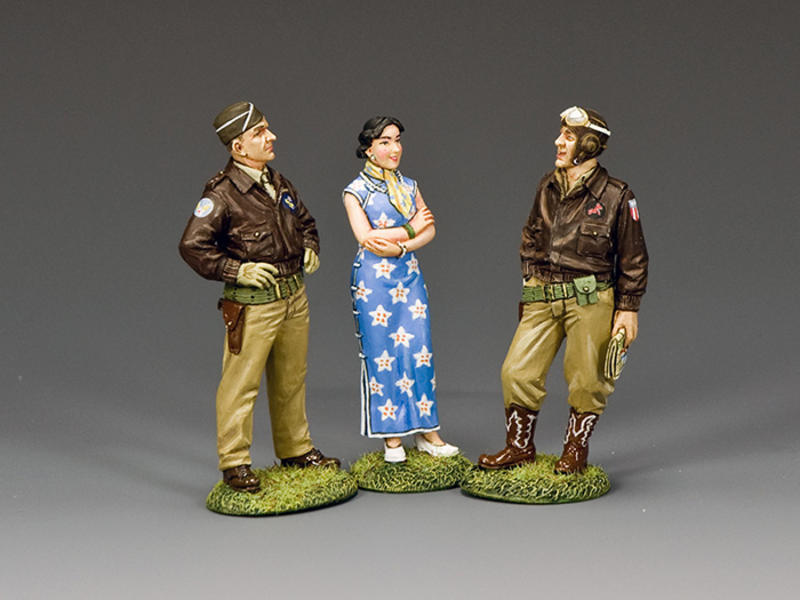 Claire Lee Chennault was a Texas-born pilot who served in the US Army Air Corps for many years before retiring in 1937 and joining the Nationalist Chinese Air Force to help train them to fight the Japanese invaders then rampaging across China. In 1940 Chennault was sent to America to obtain 100 modern fighter planes, pilots to fly them and ground crew to carry the fight to the enemy. Although America was not officially in the war, President Roosevelt secretly authorized 100 pilots (enough to man at least 3 squadrons) and almost 200 other ground crew personnel to be recruited alongwith approving the sale of 100 Curtiss P40’s. Together they would form the ‘American Volunteer Group’ and Claire Chennault was to be its leader. Anna Chan Chennault was Chennault’s second wife. Originally a reporter and war correspondent she became a prominent Republican member of the US China Lobby and a powerful woman in her own right. During WW2 she often wore traditional Chinese dress. David ‘Tex’ Hill was one of the best known of the ex military aviators who were recruited to join the Flying Tigers. Originally trained and qualified as a US Navy pilot he would become an ‘ace’ with at least 6 victories while flying with the ‘Tigers’. After his China service he would transfer to the Army Air Corps and eventually the US Air Force where he remained until his retirement in 1968 as a Brigadier General.