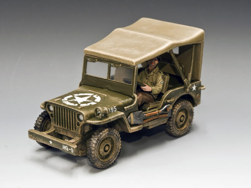 K&C loves jeeps of all shapes and sizes... they've put machine guns on 'em... they've fitted them out as Medic Jeeps"... ...they've covered them in snow... Heck, they've even delivered Santa in a jeep. Now, just your BASIC JEEP... no guns... no stretchers... just a jeep and driver, pure and simple. Plus, of course, the canvas cover. "