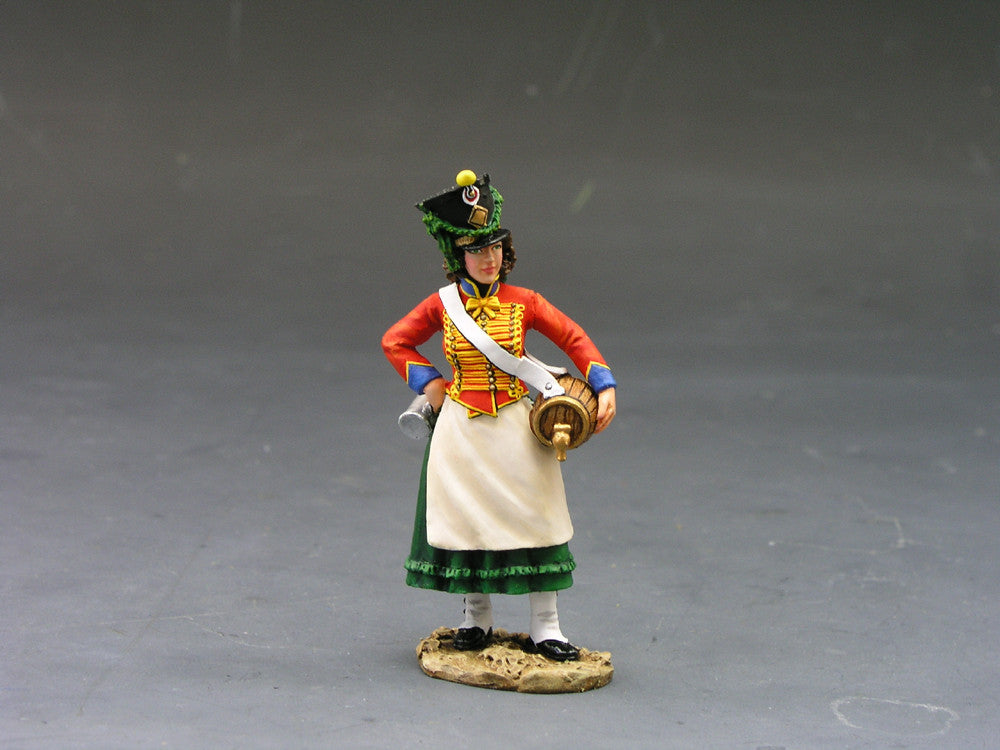 In Napoleonic times most regiments, both foot and horse, had ladies of the Regiment (either wives, widows or camp followers) who made a living supplying wine and ale to the men. They often wore parts of military uniform along with their civilian dress.