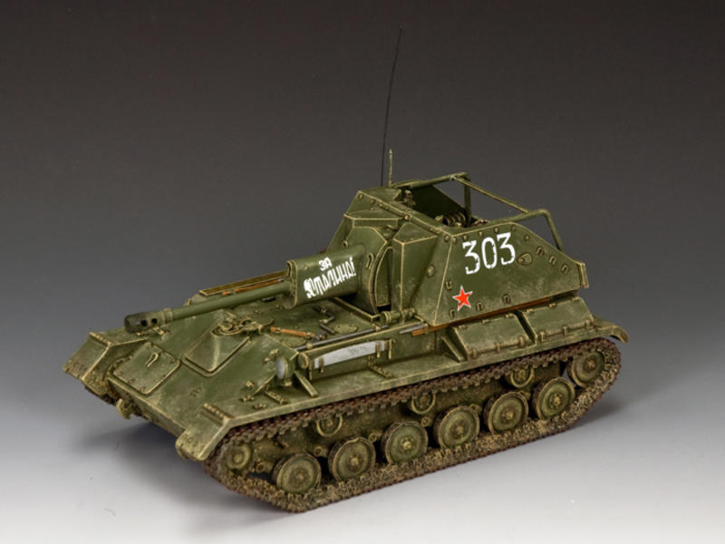 The SU-76 was a Soviet designed Self-Propelled Gun used during and after WW2. Its simple construction made it the second-most produced Russian armoured vehicle after the T34. Red Army crews liked it for its reliability and ease-of-use and nick-named it the “Golozhopiy Ferdinand” (the bare-arsed Ferdinand). Our model includes one gunner who can fit inside the rear fighting compartment.