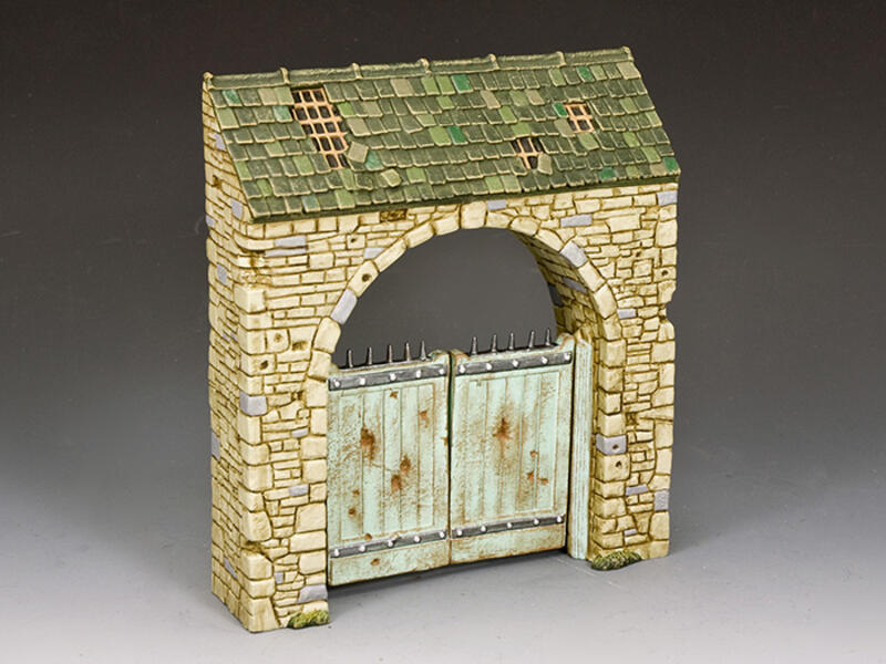 The perfect architectural feature to extend and grow a European display or diorama for virtually any historical period from the middle ages all the way up to the wars of the 20th Century and all points in between. The two doors can open and close and have a wooden 'locking bar' to hold them in place. Goes well with SP114 and SP119.