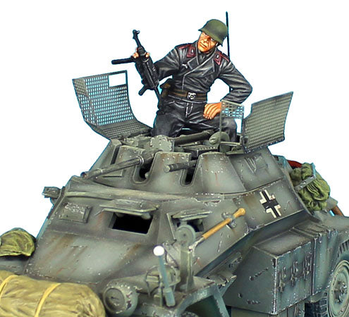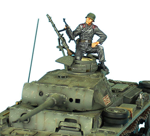 TC004 German Tank Crew Sitting with Helmet and Raised MP-40