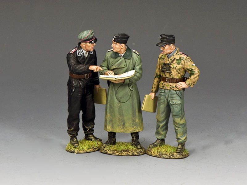 Three Panzer commanders gather together to discuss today’s plan-of-action. During the Battle of Normandy it was virtually impossible for any German vehicle to appear on the roads during daylight. As the morning dawn begins to break these three have already moved their tanks into position during the previous hours of darkness... Now, they prepare for their ambush of the approaching Allied armour.